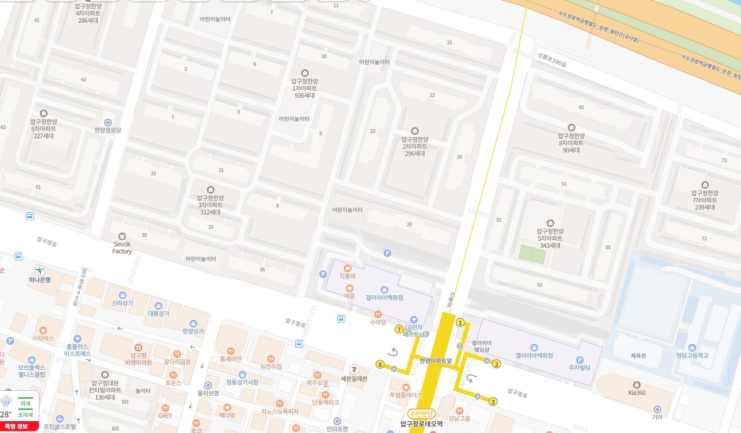 지금부터는 압구정동을 거주하면서 느낀 장단점에 대해서 이야기해보겠습니다. 제가 사는 곳이 압구정 한양아파트이므로 한양아파트를 기준으로 말씀드리는 점 참고해주십시오.