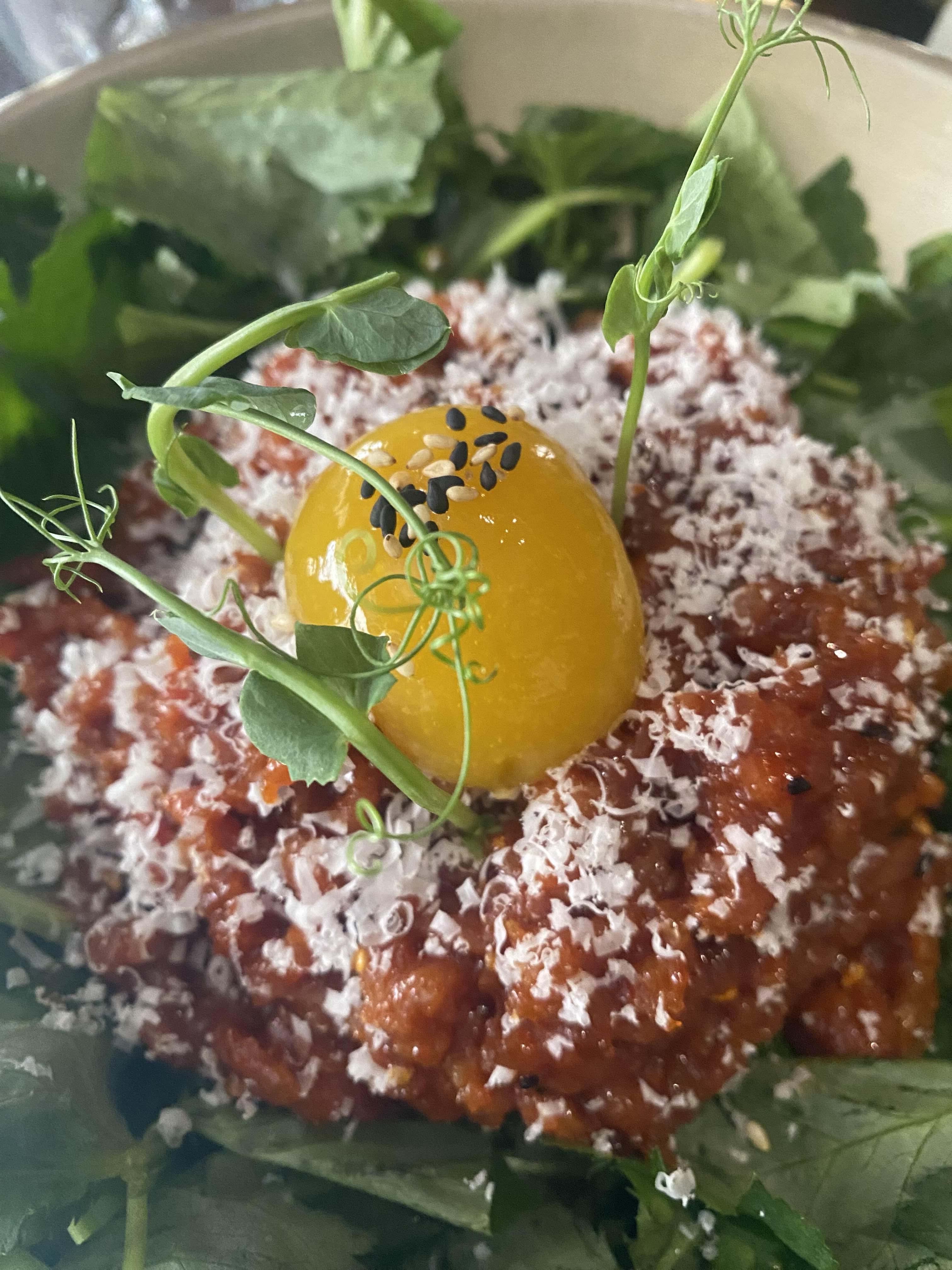 위에 올려져 있는 노란색은 노른자가 아니라 망고소스였습니다~!