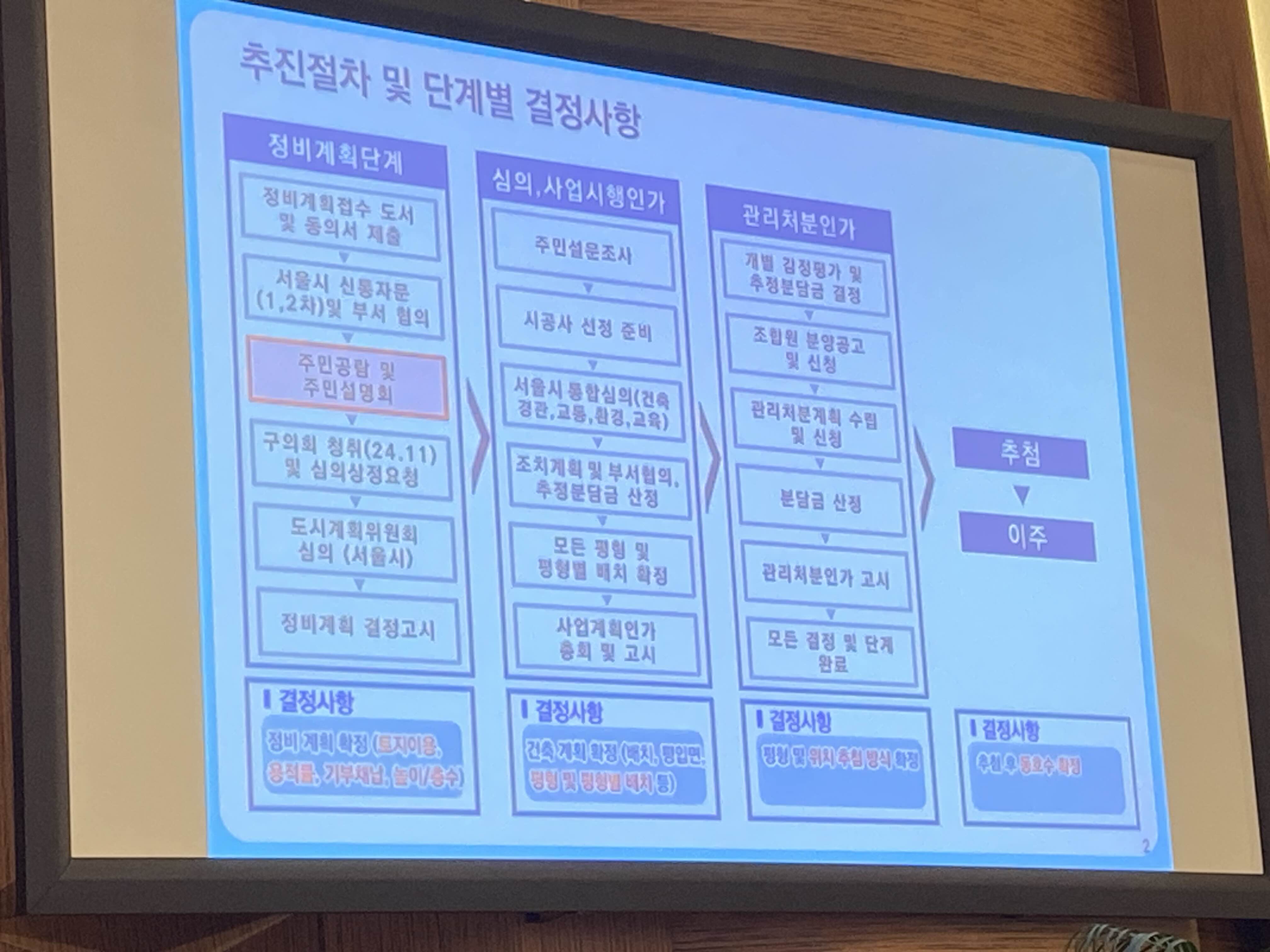 지금 정비계획 단계 중 주민 공람 및 주민설명회이고
