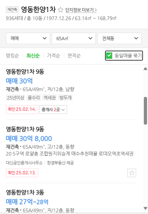 2월 중순 이후의 매물을 캡쳐해보았습니다.