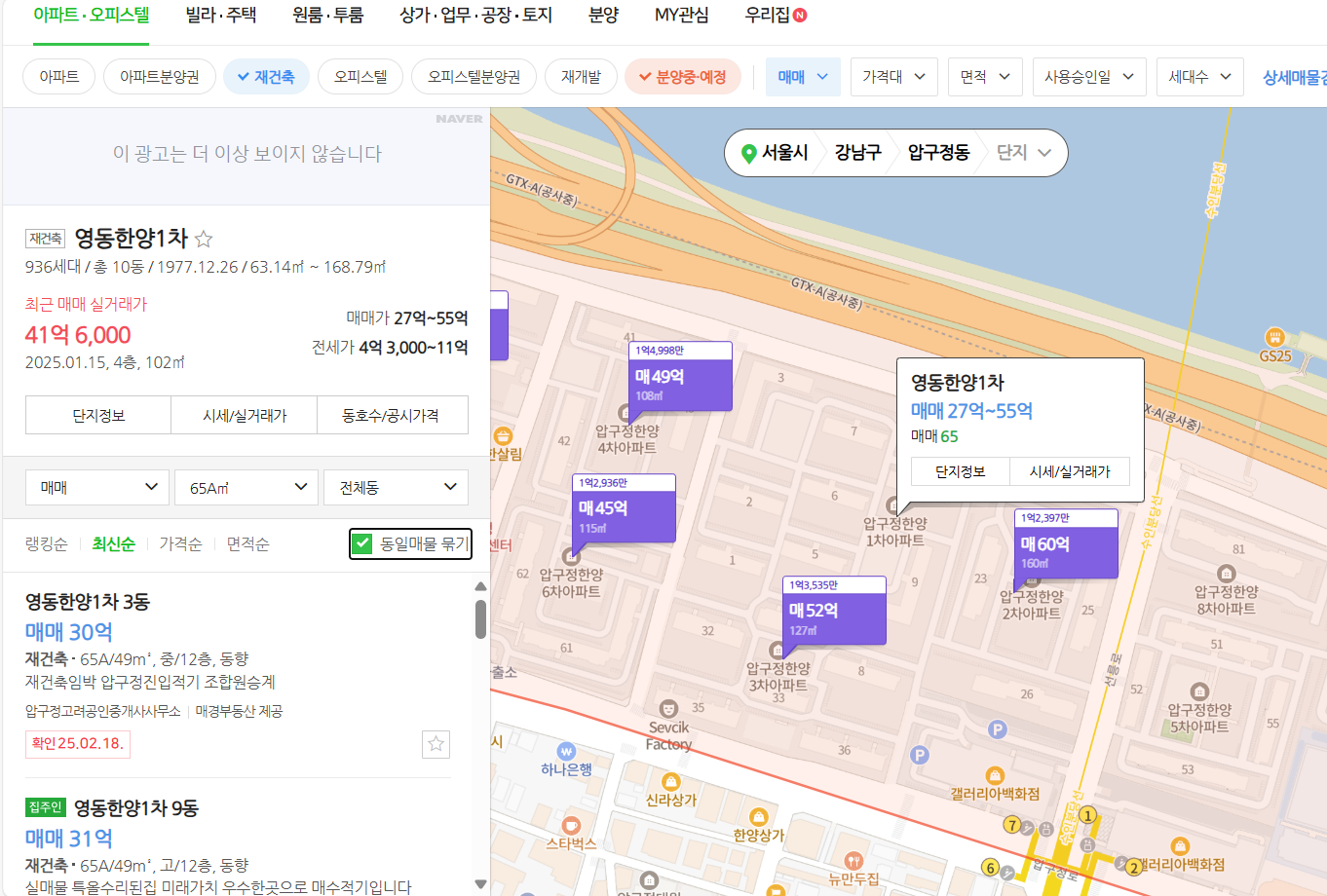 아무래도 토지거래제한구역의 해제로 압구정동에서 여전히 신고가가 계속 나오는 상황이라