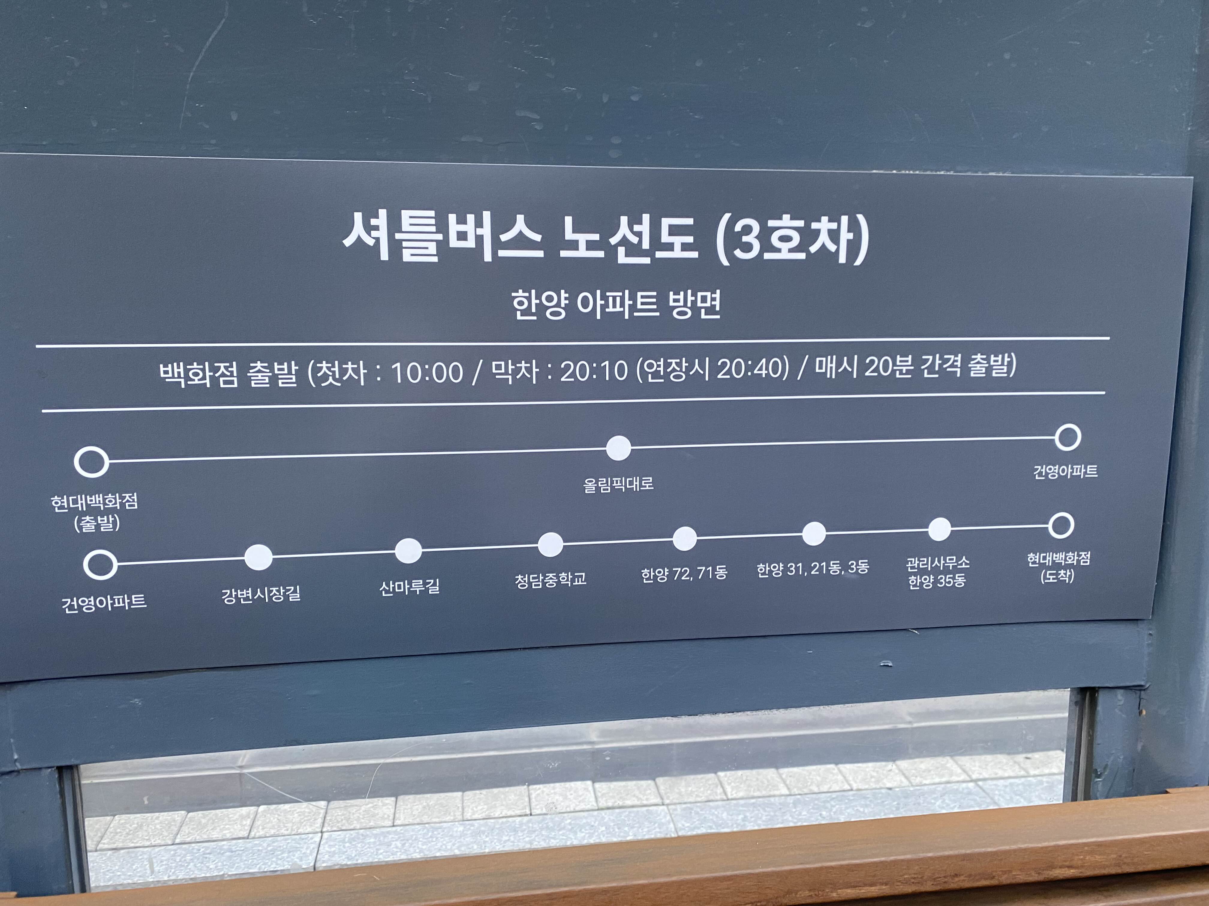 압구정 현대백화점 셔틀버스를 이용하시는 분들께 도움이 되면 좋겠습니다.