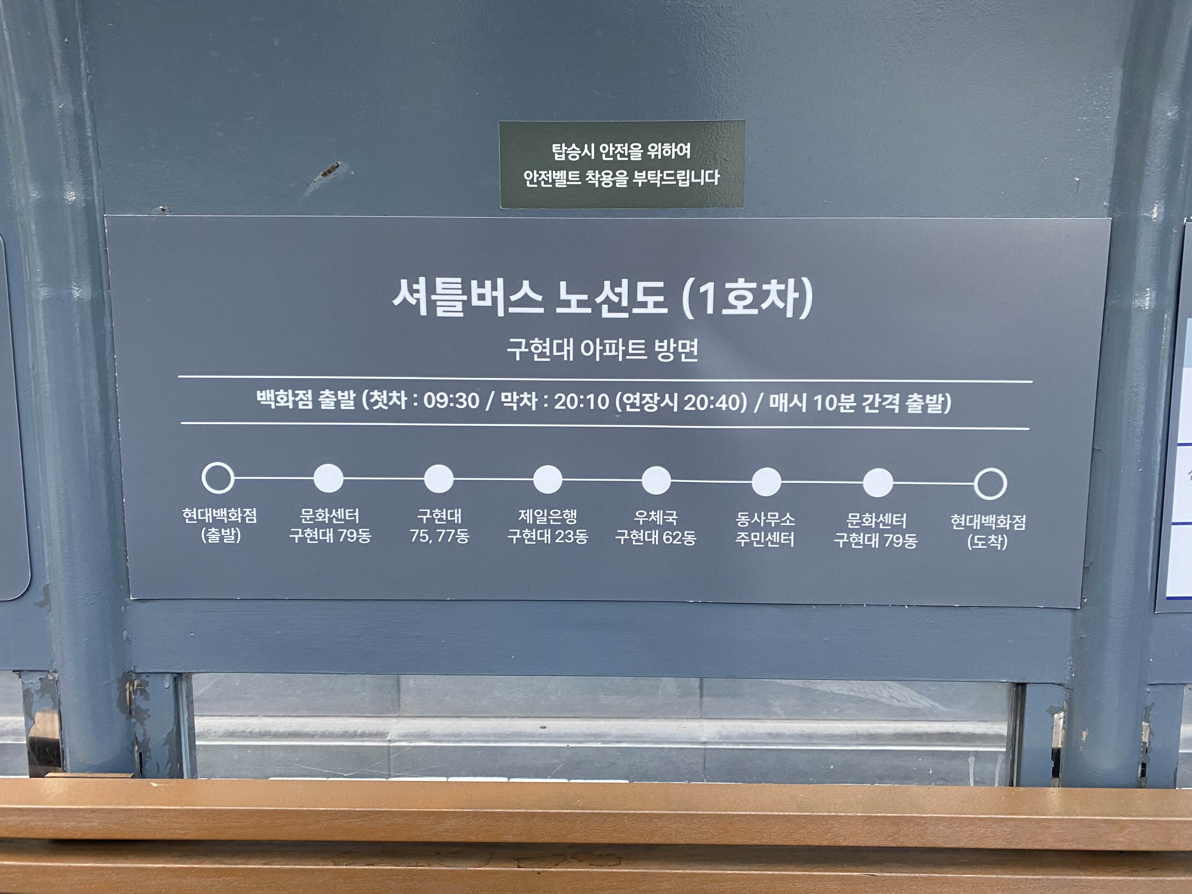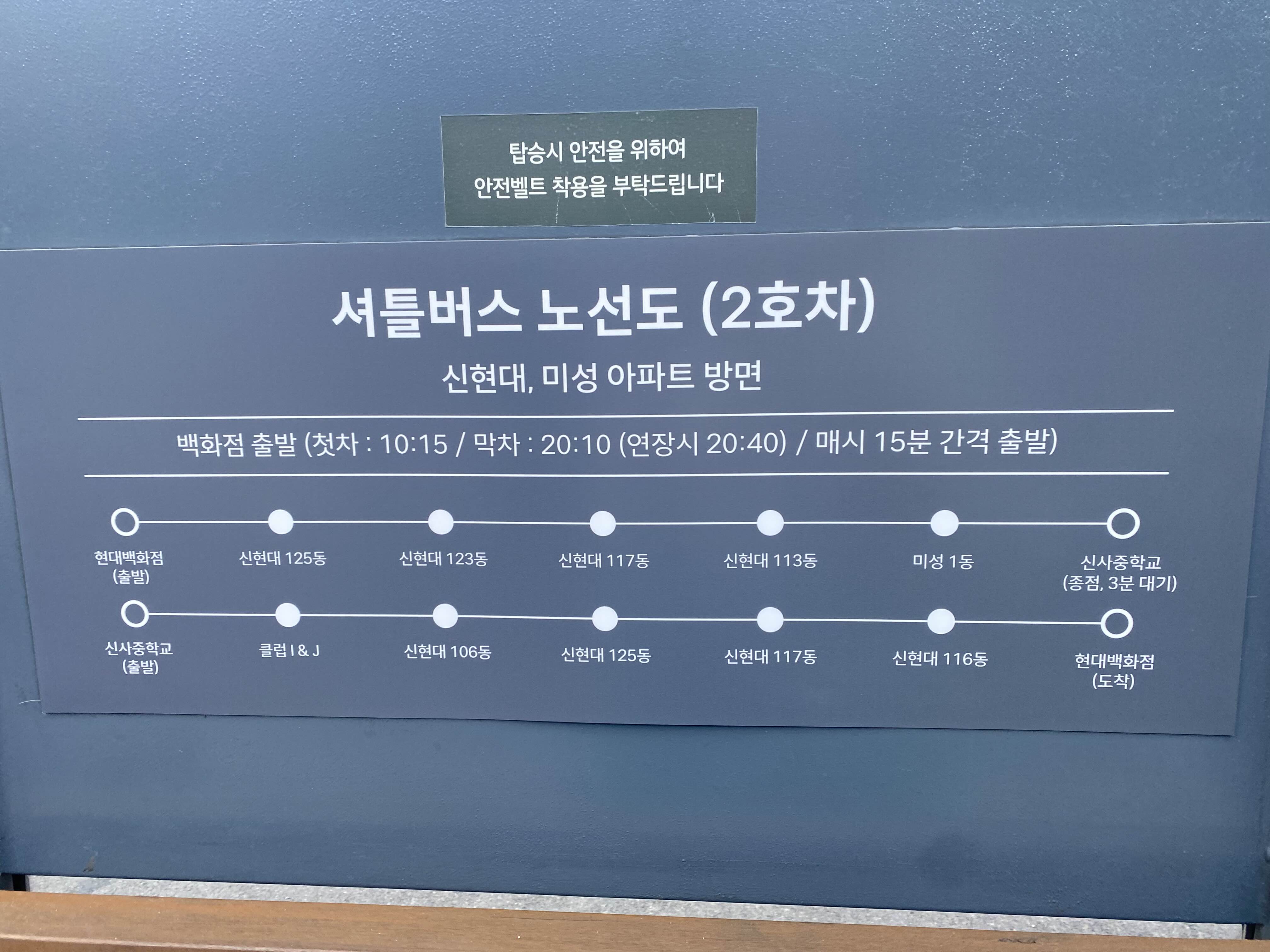 지금부터 압구정 현대백화점 셔틀버스 정보를 공유하고자 합니다.