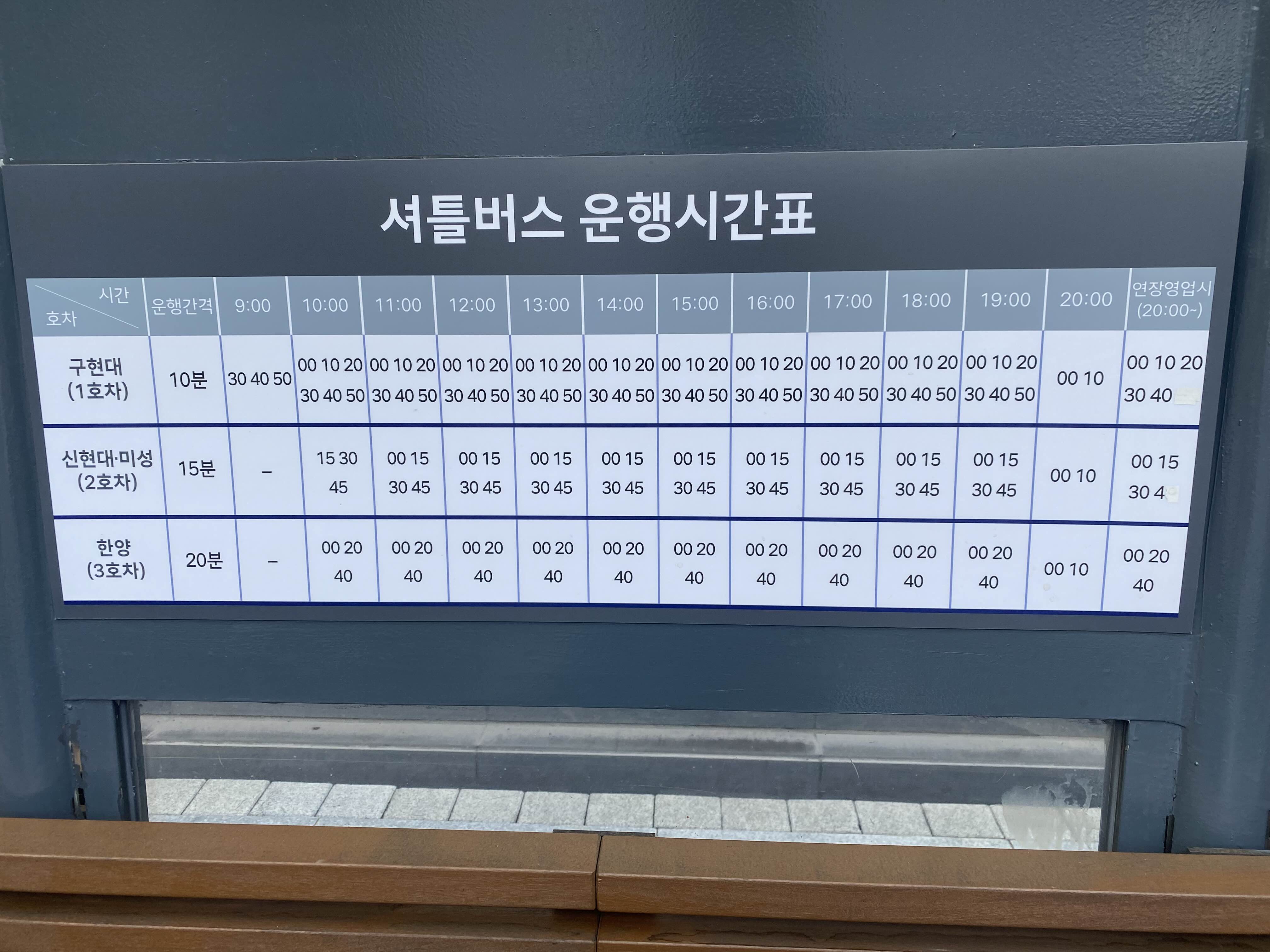 1호차 셔틀버스는 구현대 아파트 방면입니다.